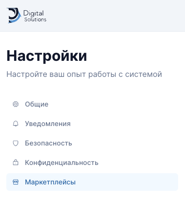В открывшемся окне перейдите на вкладку "Маркетплейсы".