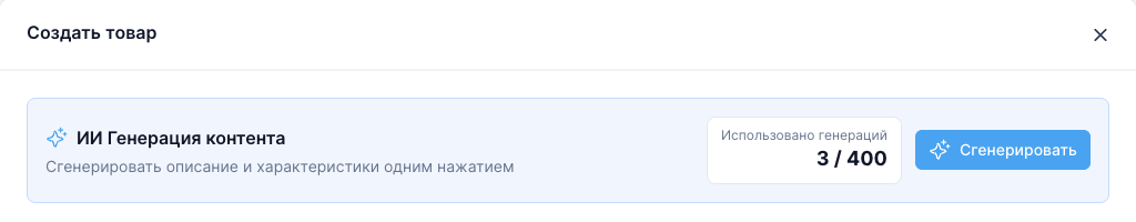 ИИ-генерация использует информацию о категориях для создания релевантных характеристик. Без выбора категории система не будет знать, какие характеристики актуальны для вашего товара, и может сгенерировать неподходящие данные.